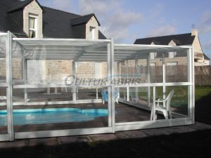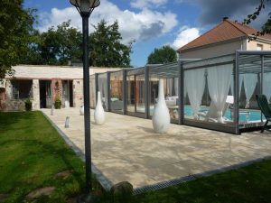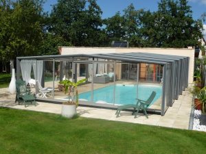 Avec l’abri de piscine télescopique sans rail au sol MOOREA 3 haut, profitez d’un véritable espace à vivre.